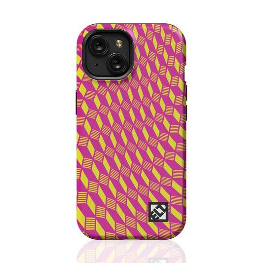 Geometric Wave in Magenta & Yellow for iPhone 15 Series Phone Cases | ELD