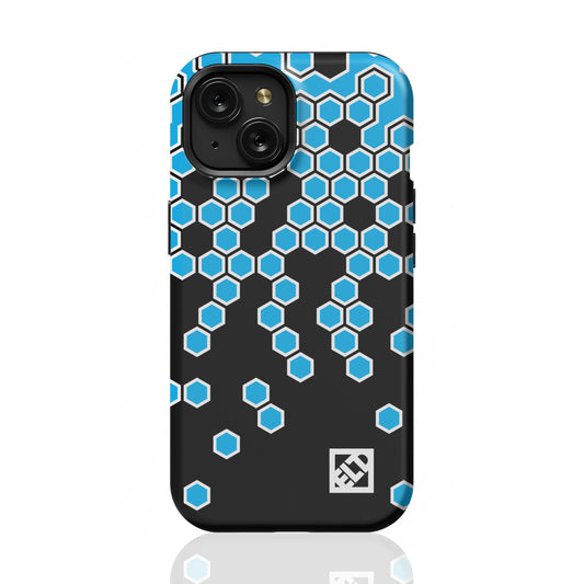 Hexagonal Blue Fade to Black Geometric Pattern for iPhone 15 Series Phone Cases | ELD