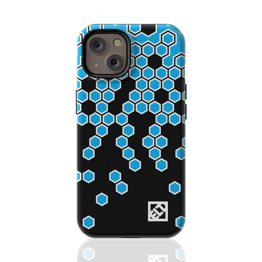 Hexagonal Blue Fade to Black Geometric Pattern for iPhone 13 Series Phone Cases | ELD
