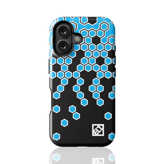Hexagonal Blue Fade to Black Geometric Pattern for iPhone 16 Series Phone Cases | ELD