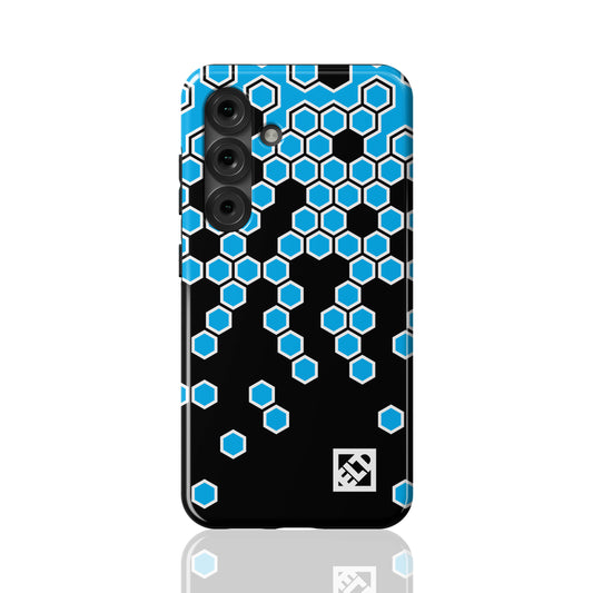 Hexagonal Blue Fade to Black Geometric Pattern for Galaxy S25 Series Phone Cases | ELD
