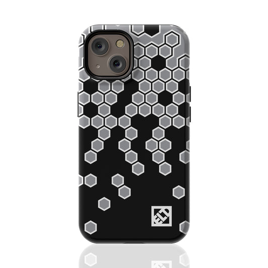 Hexagonal Gray Fade to Black Geometric Pattern for iPhone 14 Series Phone Cases | ELD