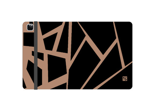 Black & Tan Geometric Art in Fractured Pattern on Folio Wallet for iPad Pro 12.9 (4, 5 and 6 Gen) | ELD