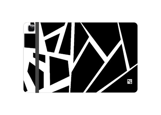 Black & White Geometric Art in Fractured Pattern on Folio Wallet for iPad Pro 12.9 (4, 5 and 6 Gen) | ELD