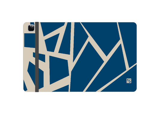 Blue & Tan Geometric Art in Fractured Pattern on Folio Wallet for iPad Pro 12.9 (4, 5 and 6 Gen) | ELD