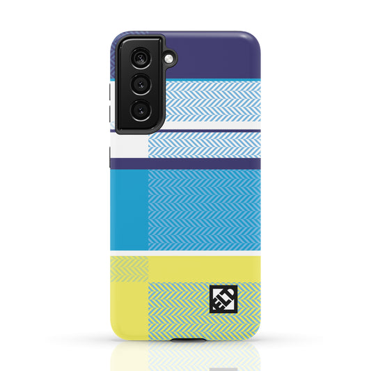 Blue & Yellow Zig Zag Pattern in Blocks Art Galaxy S21 Series Phone Cases | ELD