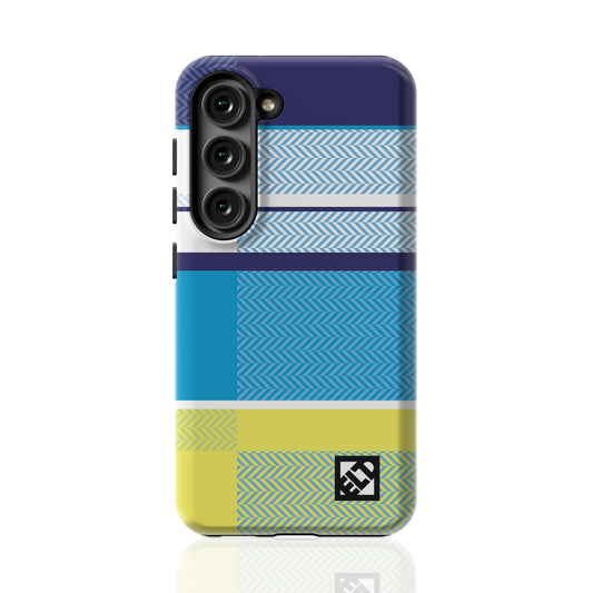 Blue & Yellow Zig Zag Pattern in Blocks Art Galaxy S23 Series Phone Cases | ELD
