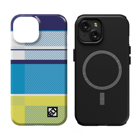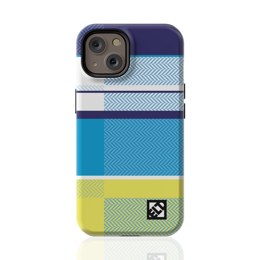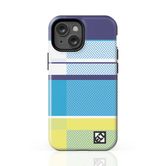 Blue & Yellow Zig Zag Pattern in Blocks Art iPhone 15 Series Phone Cases | ELD