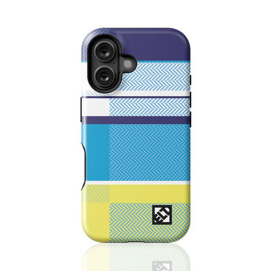 Blue & Yellow Zig Zag Pattern in Blocks Art iPhone 16 Series Phone Cases | ELD