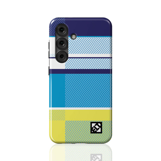 Blue & Yellow Zig Zag Pattern in Blocks Art Galaxy S25 Series Phone Cases | ELD