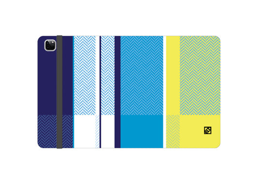 Blue & Yellow Zig Zag Pattern in Blocks Art Folio Wallet for iPad Pro 12.9 (4, 5 and 6 Gen) | ELD
