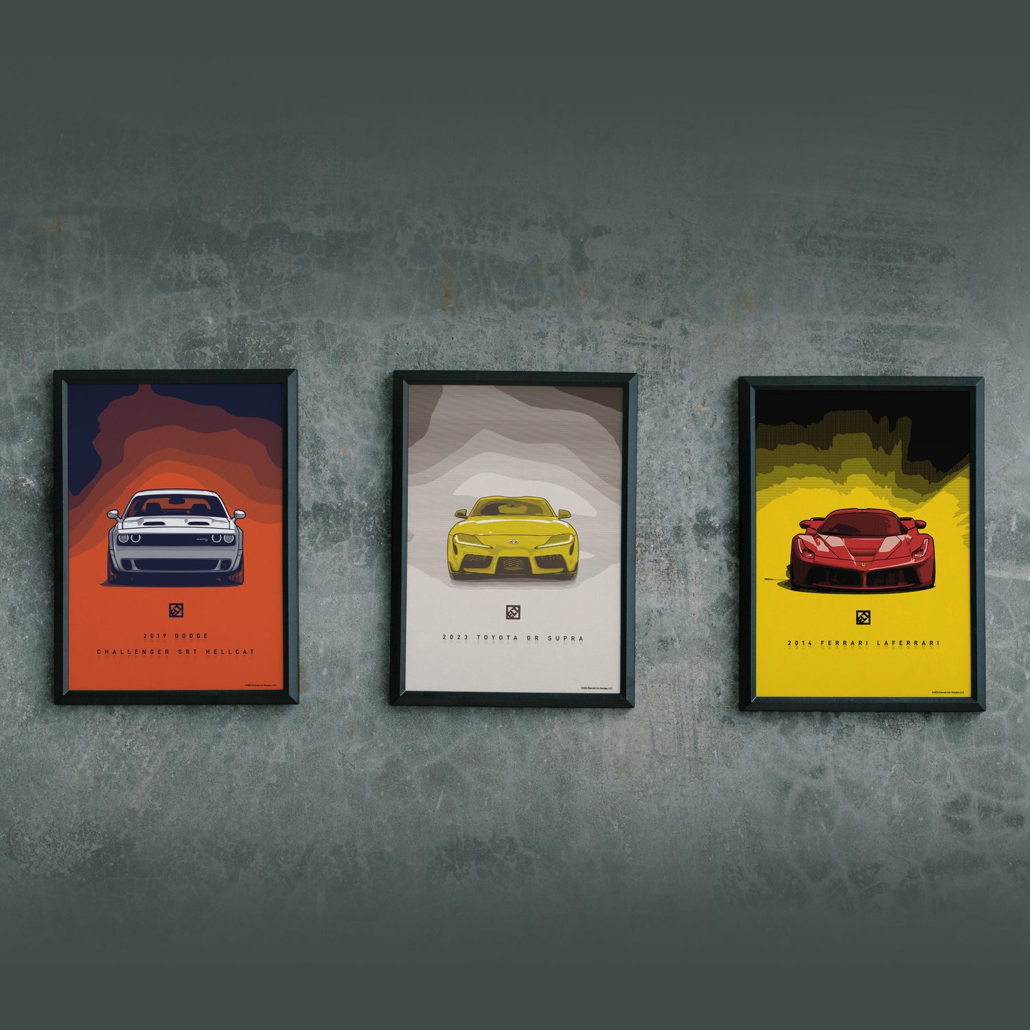 Available as posters, canvas prints, acrylic prints, and phone cases, these bold designs turn your garage, office, or man cave into a gallery of horsepower. It’s not just wall art — it’s a statement of who you are and what drives you.